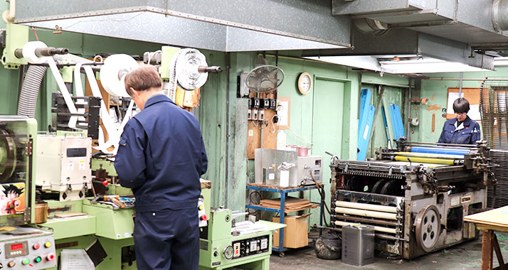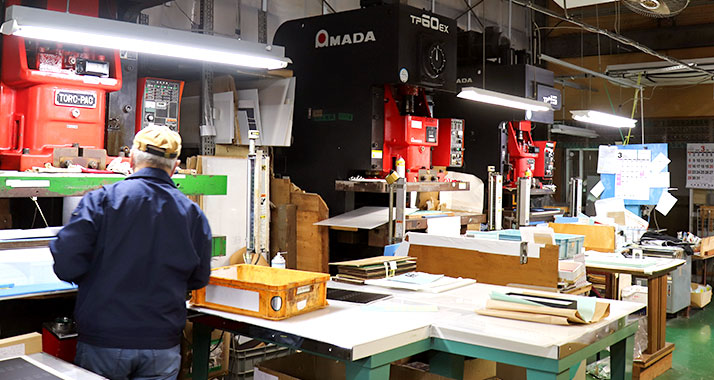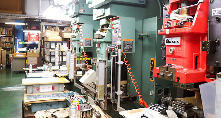 プレス加工、シルク印刷、凸版印刷、塗装など、社 内設備を活かした一貫生産を行います。